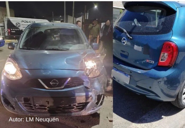 Una vecina que presenció el ataque intentó cerrarles el paso con su auto, lo que desató una peligrosa maniobra de escape: el Nissan chocó contra dos vehículos y estuvo a punto de atropellar a varias personas.