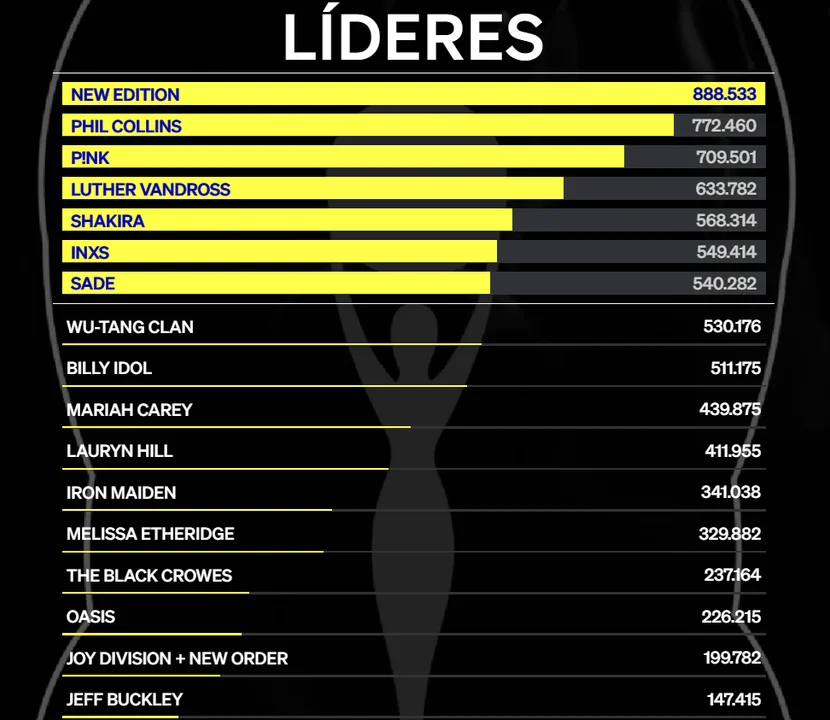 Según los resultados parciales de la votación abierta en el sitio oficial del organismo, la cantante se ubica en el quinto lugar, por encima de otros artistas internacionales como Mariah Carey, Oasis y Billy Idol.