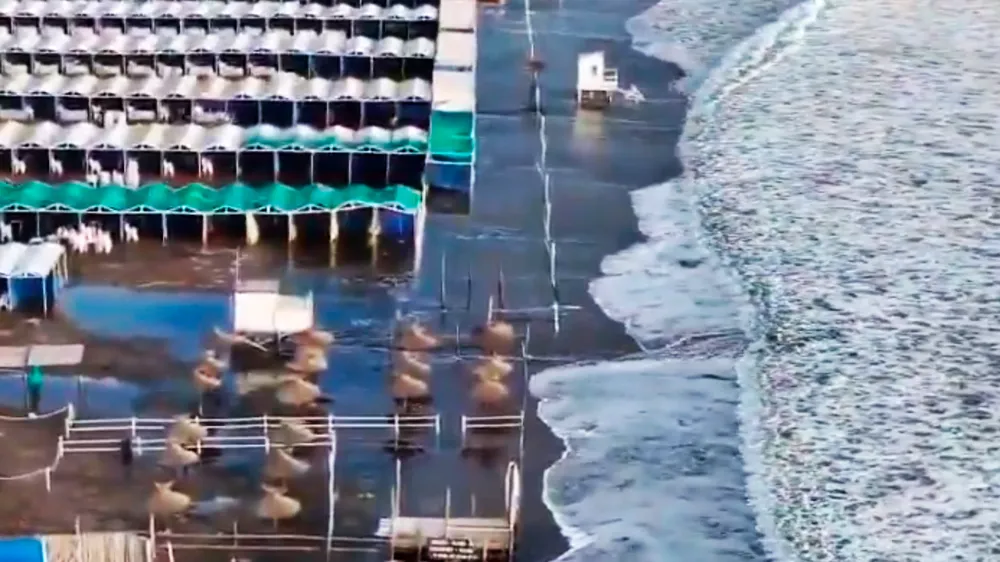 En las zonas más comprometidas, la fuerza del mar provocó el desarme y la rotura de carpas, mientras que en varios puntos el agua superó la línea habitual de costa y rodeó las garitas de los guardavidas, generando preocupación entre concesionarios y turistas.