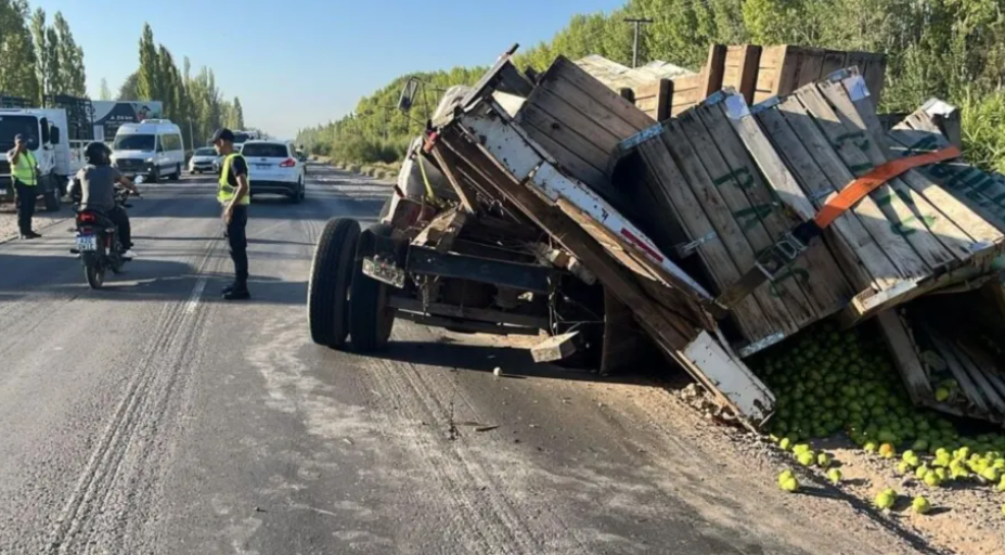 El siniestro ocurrió el viernes 23, minutos después de las 19, en el kilómetro 4,5 de la Ruta Nacional 151. Según informó la Policía, el conductor, un hombre de 46 años, relató que las cubiertas del lado derecho del eje trasero del camión explotaron, provocando la pérdida de balance y que la unidad se partiera. Toda la carga quedó esparcida sobre el margen de la calzada.