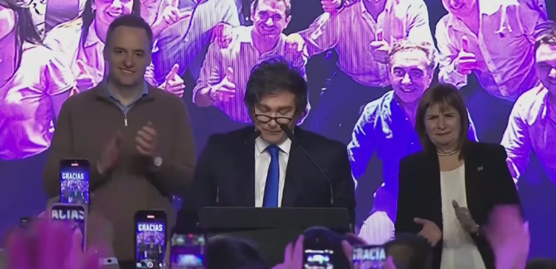 El presidente Javier Milei se dirigió a la ciudadanía cerca de las 22.30 horas, celebrando la victoria y destacando la importancia histórica del resultado. “Hoy es un día histórico para Argentina, el pueblo decidió dejar atrás cien años de decadencia, hoy pasamos el punto bisagra, hoy comienza la construcción de la Argentina grande”, afirmó.