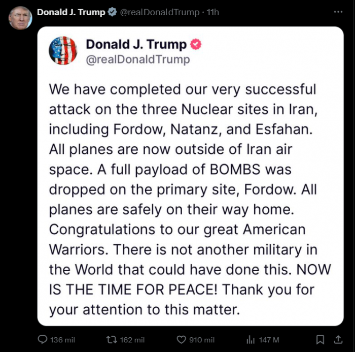 — The White House (@WhiteHouse) June 22, 2025