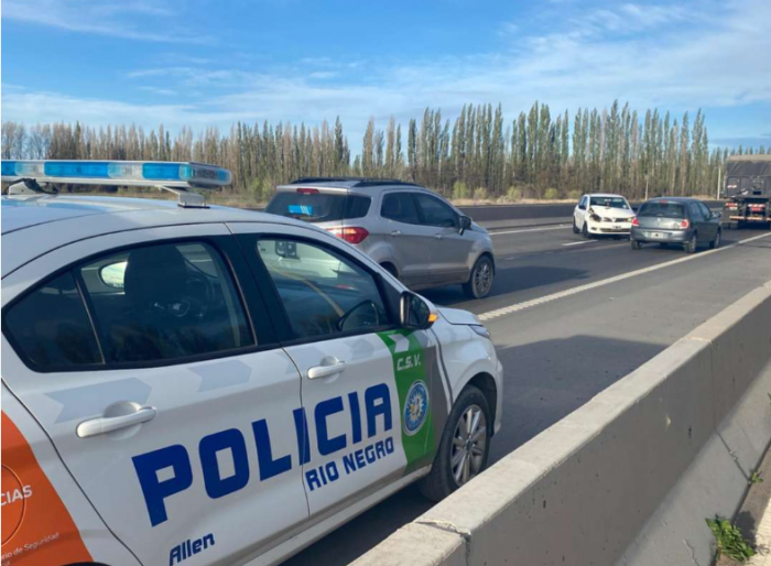 Un siniestro vial registrado en la tarde de este lunes complicó el tránsito en la Ruta Nacional 22. El hecho ocurrió alrededor de las 18:20, a la altura del kilómetro 1204, entre las localidades de Allen y Fernández Oro.