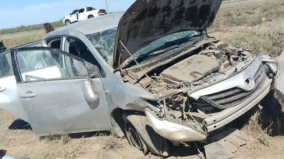 Un Toyota Corolla en el que viajaba una familia desde Neuquén hacia Las Grutas volcó este viernes alrededor de las 9.30 en el kilómetro 220 de la Ruta Nacional 250, a unos 45 kilómetros al sur de Pomona. El vehículo terminó dando tres tumbos y quedó invertido sobre un alambrado.