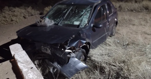 La conductora, una mujer de 43 años, manejaba acompañada de tres familiares de 71, 61 y 82 años con destino a Cipolletti cuando observó sobre la cinta asfáltica una rueda de auto en el medio del camino. Viendo el peligro de pasarle por encima, intentó esquivar el objeto y mordió la banquina. Hacia el final chocó contra una estructura de hormigón al costado del camino.