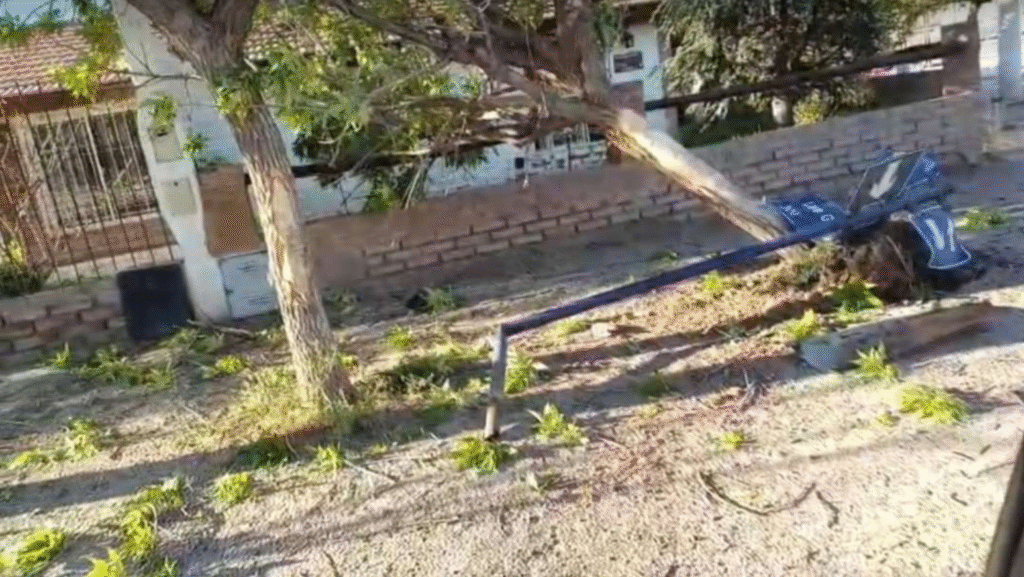 De acuerdo con testigos, un vehículo que circulaba a gran velocidad por la calle Rhode perdió el control, subió a la vereda y terminó incrustado contra un árbol. El golpe fue tan violento que, tras el primer impacto, el auto salió impulsado hacia unos postes de alumbrado, los arrancó de cuajo y los desplazó varios metros.